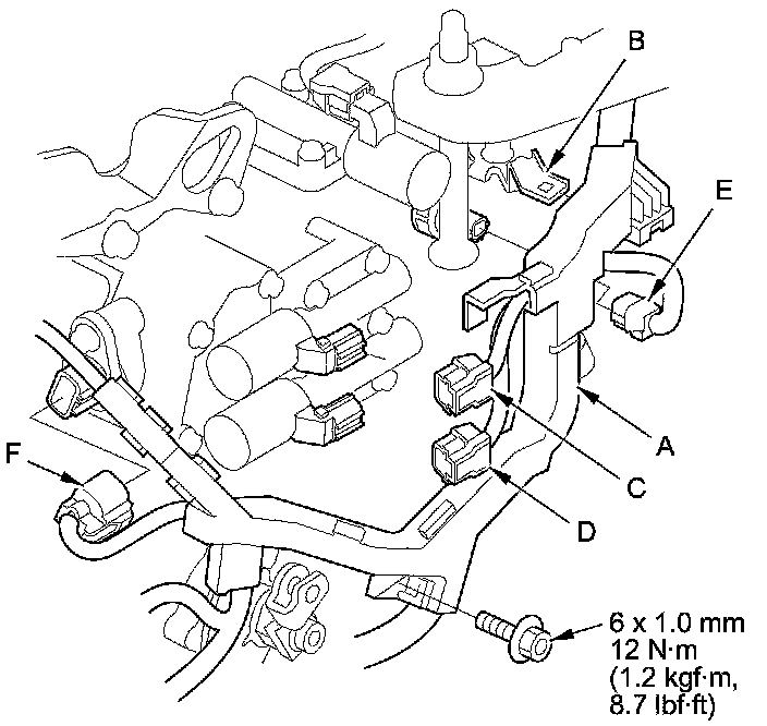 - Shift solenoid wire harness connector (F)