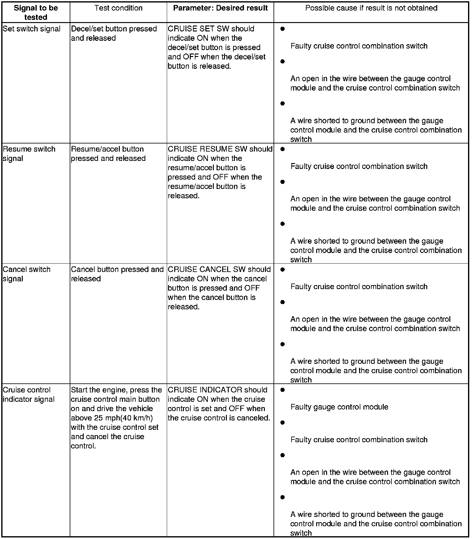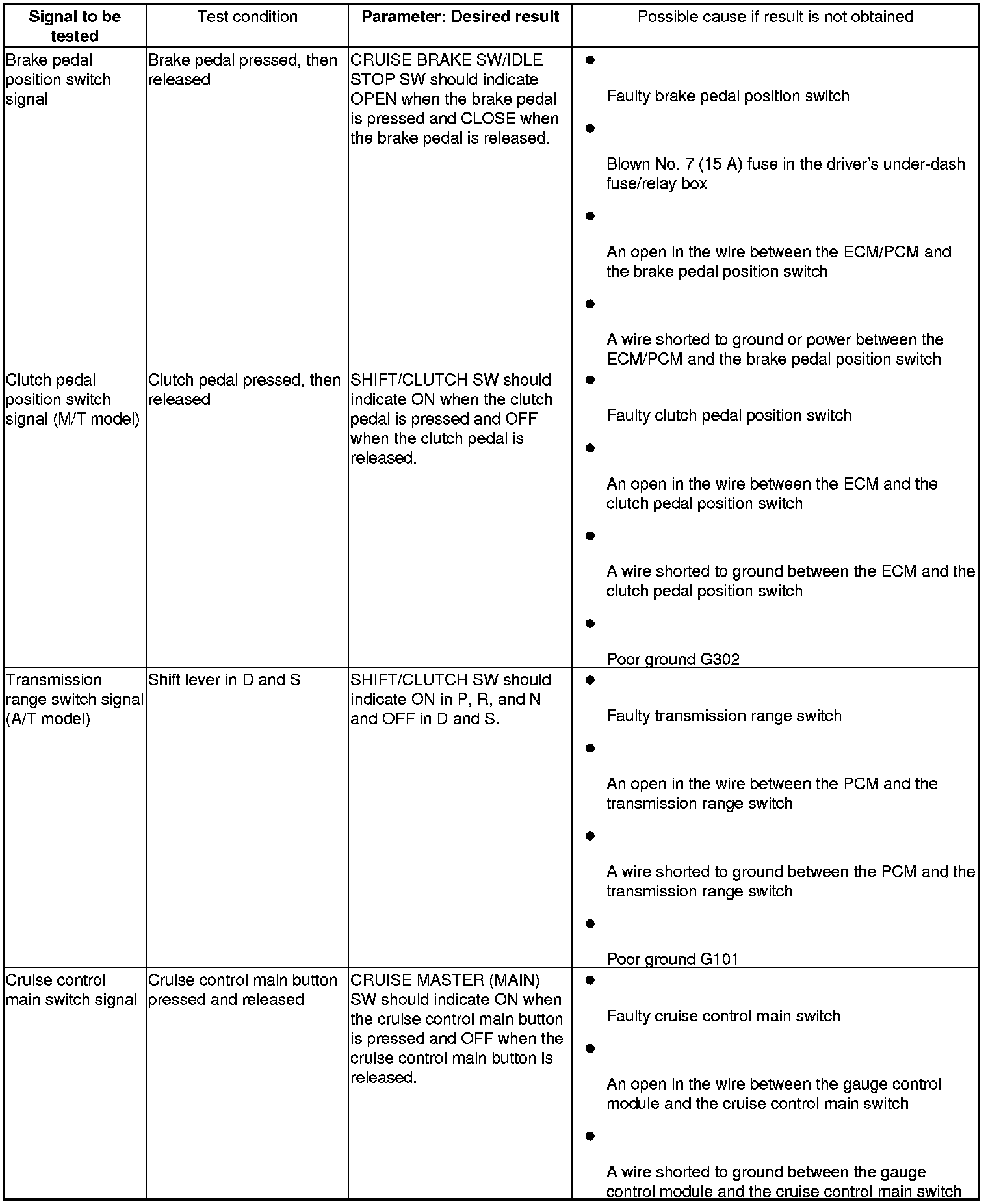 Cruise Control (ECM/PCM) Input Test (M/T)