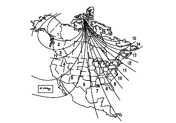 5. Find the zone for your area on the map. If the correct zone is not shown, turn the selector knob to cycle the zone list up or down.