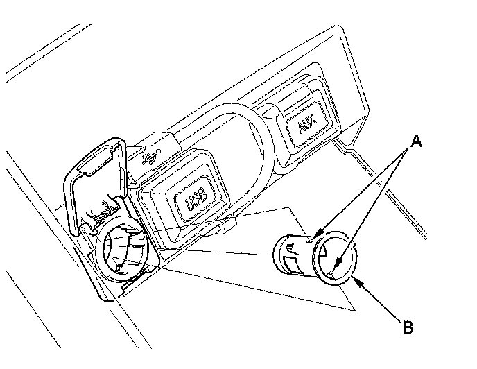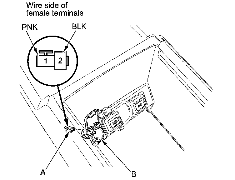 2. Disconnect the 2P connector (A) from the console accessory power socket (B).