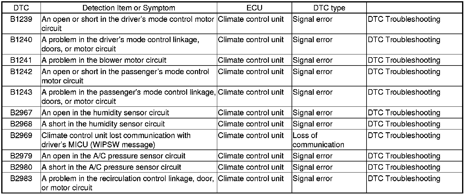 Climate Control System DTC Troubleshooting Index