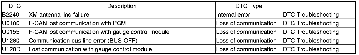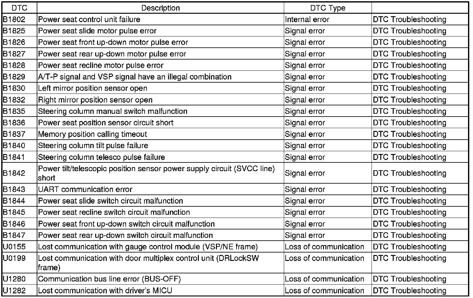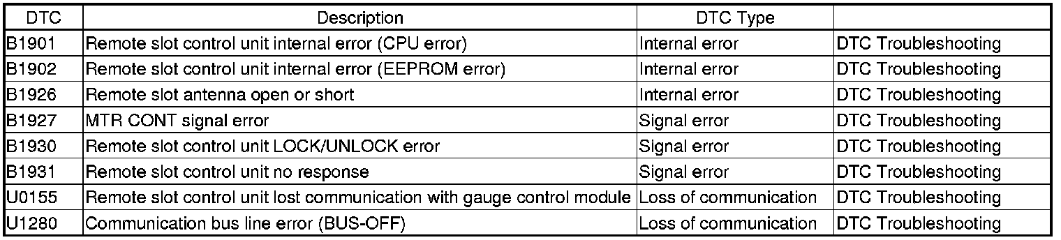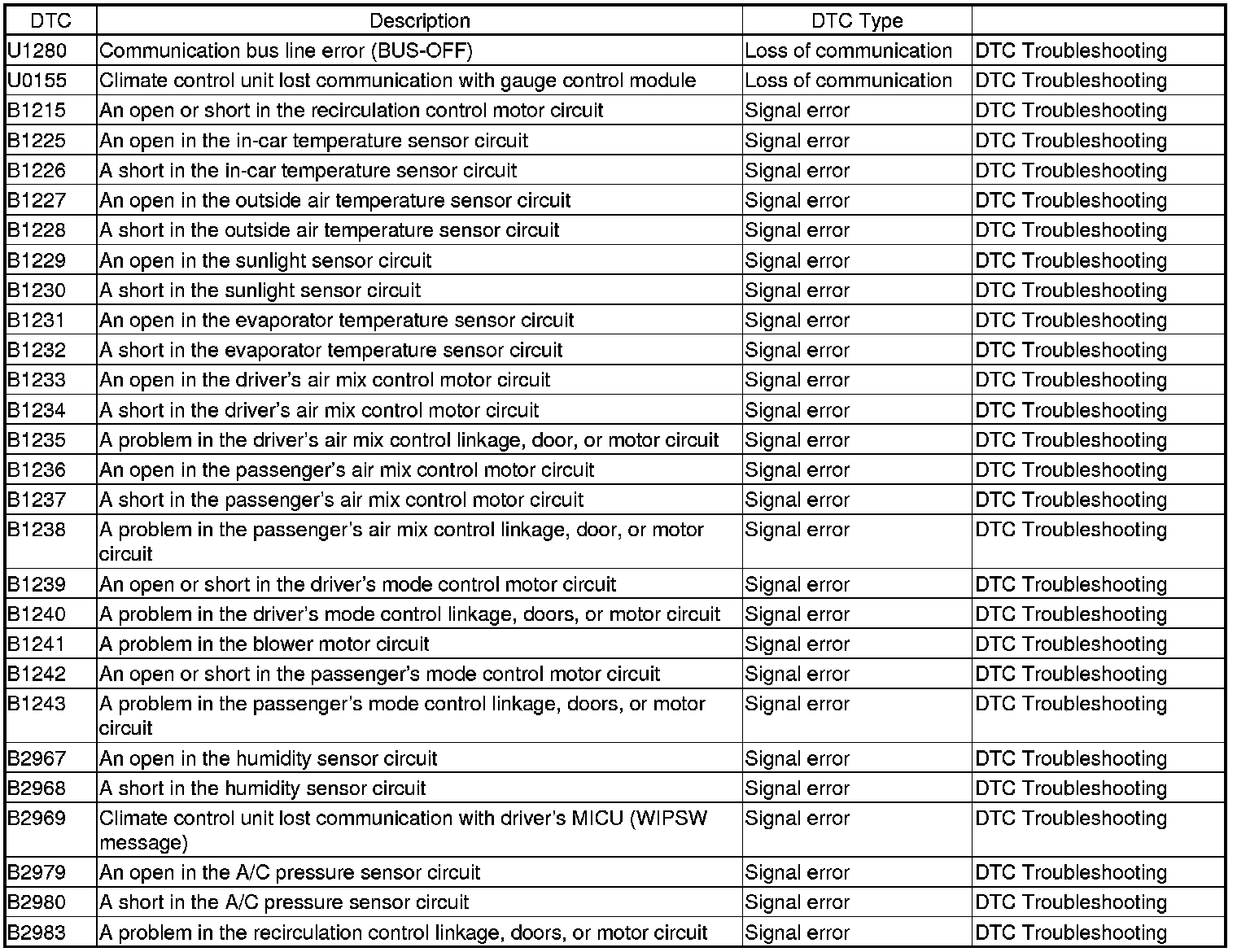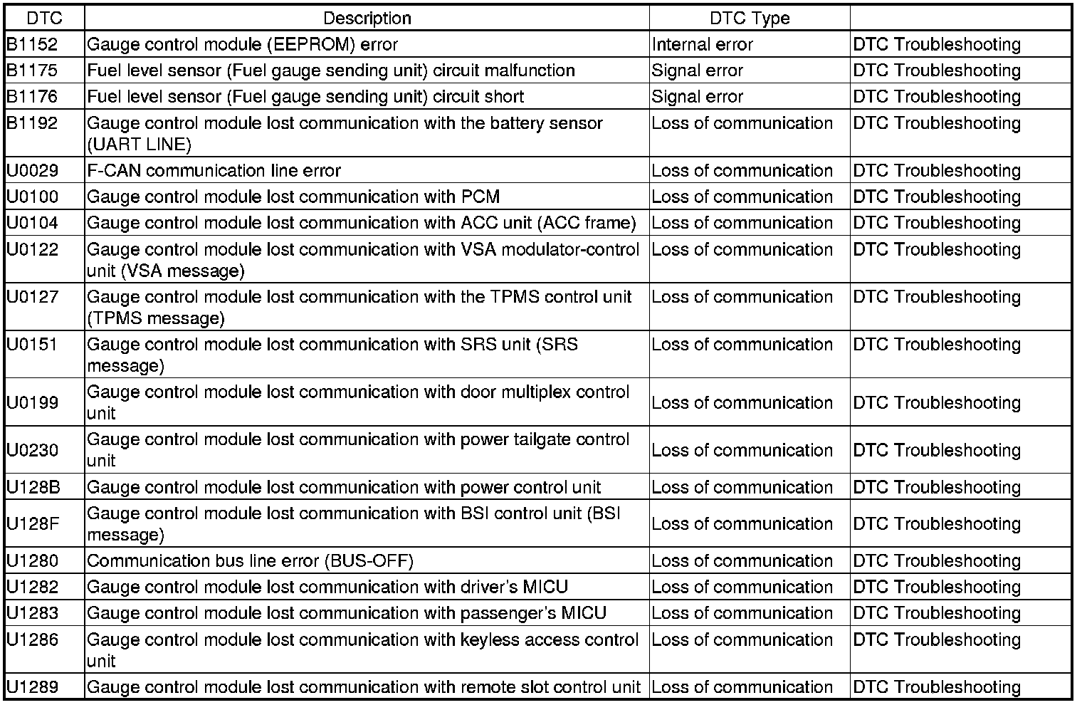 Multiplex Integrated Control System DTC Troubleshooting Index