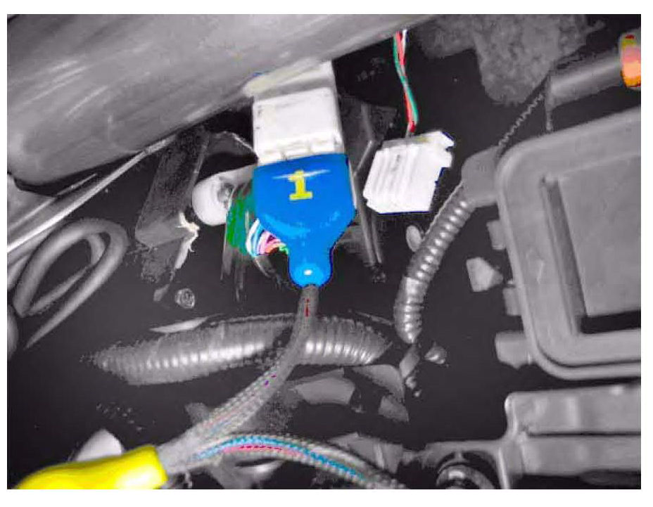 10. Make sure the ignition switch is turned to LOCK (0), or the vehicle ignition is in the OFF mode. Locate and disconnect the AcuraLink 5P connector. NOTE: The AcuraLink update software shows the