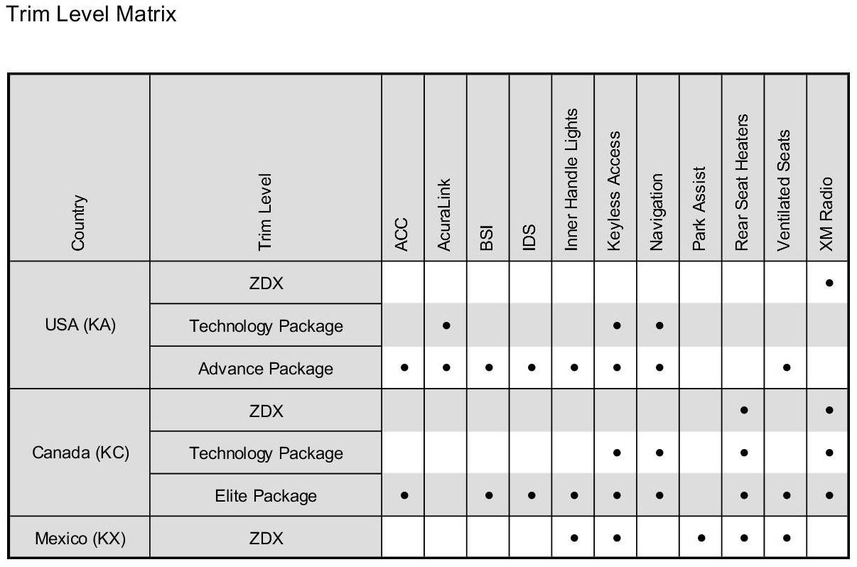 Trim Level Matrix