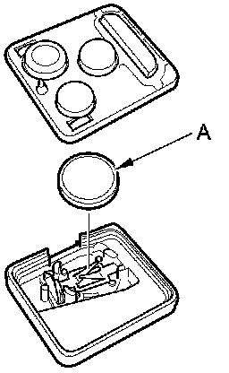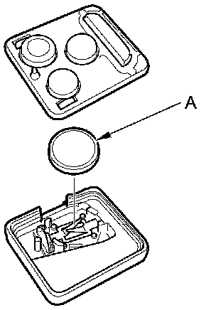 4. Replace the transmitter battery (A) with a new one (CR1616), and try to lock and unlock the doors with the transmitter by pressing the lock or unlock button five or six times.