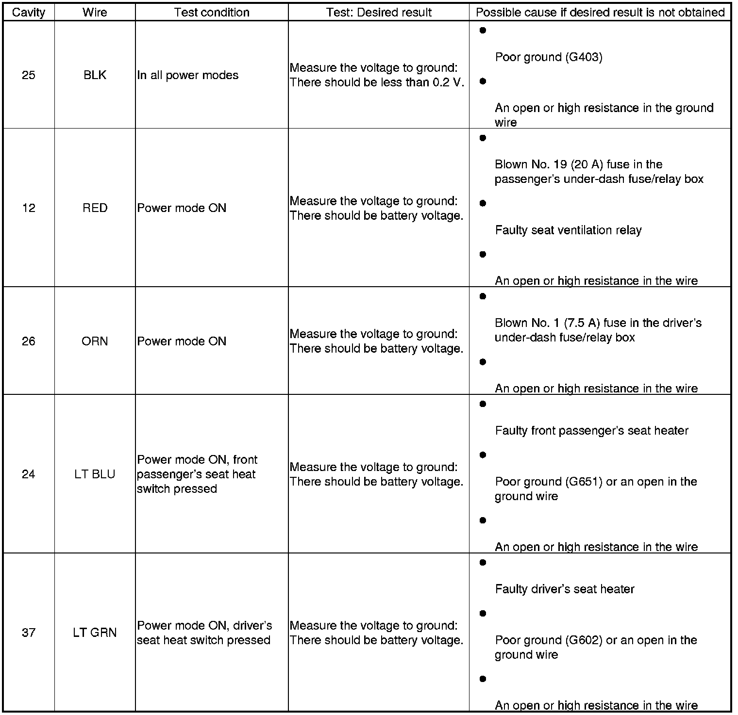 Power Seat Control Module: Testing and Inspection