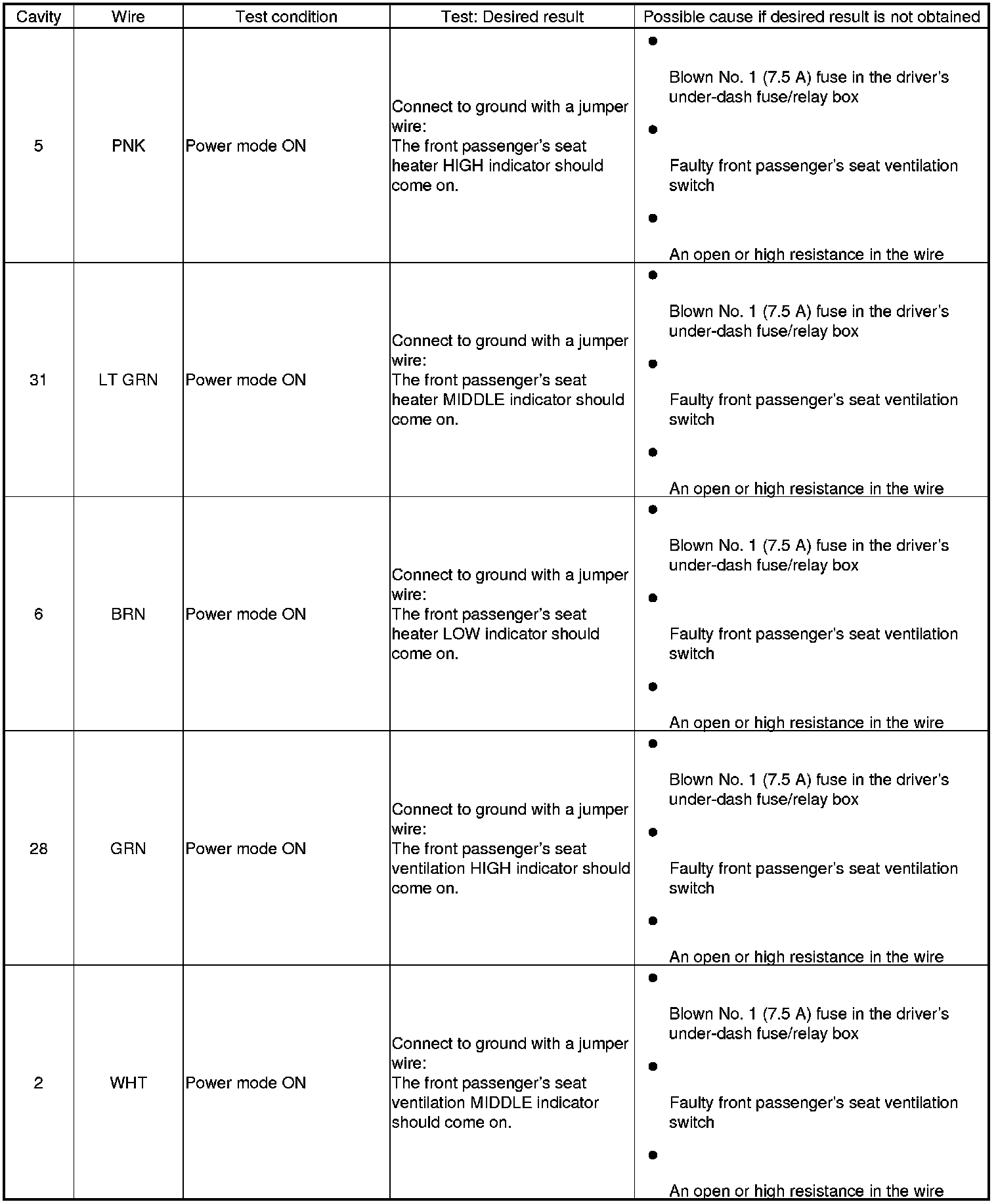 Ventilated Seat Control Unit Input Test/Replacement