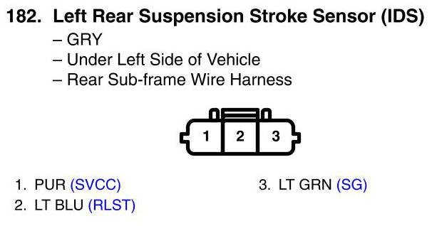 View 182 - Left Rear Suspension Stroke Sensor Connector View (IDS)