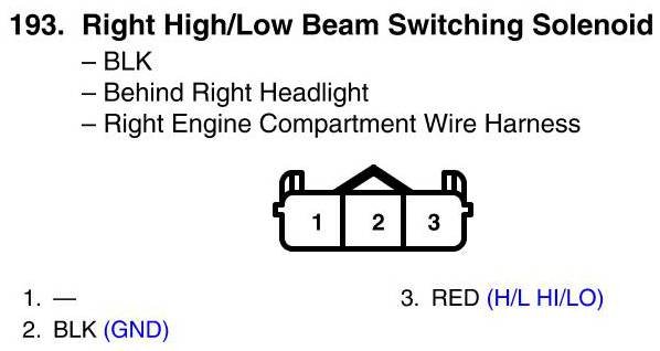 View 193 - Right High/Low Beam Switching Solenoid Connector View