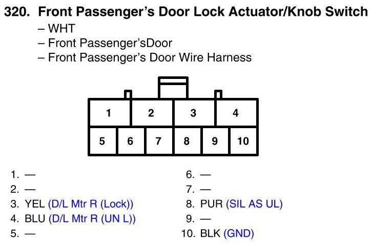 View 320 - Front Passenger's Door Lock Actuator/Knob Switch Connector View