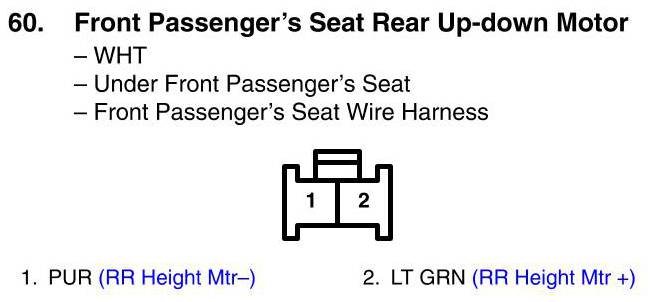 View 60 - Front Passenger's Seat Rear Up-down Motor Connector View