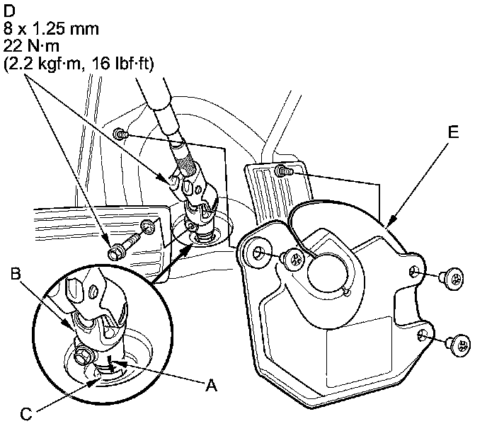 47. Install the steering joint cover (E).
