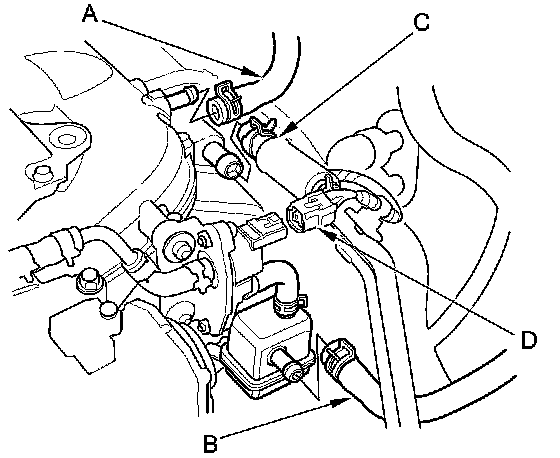 50. Connect the EVAP canister purge valve connector (D).
