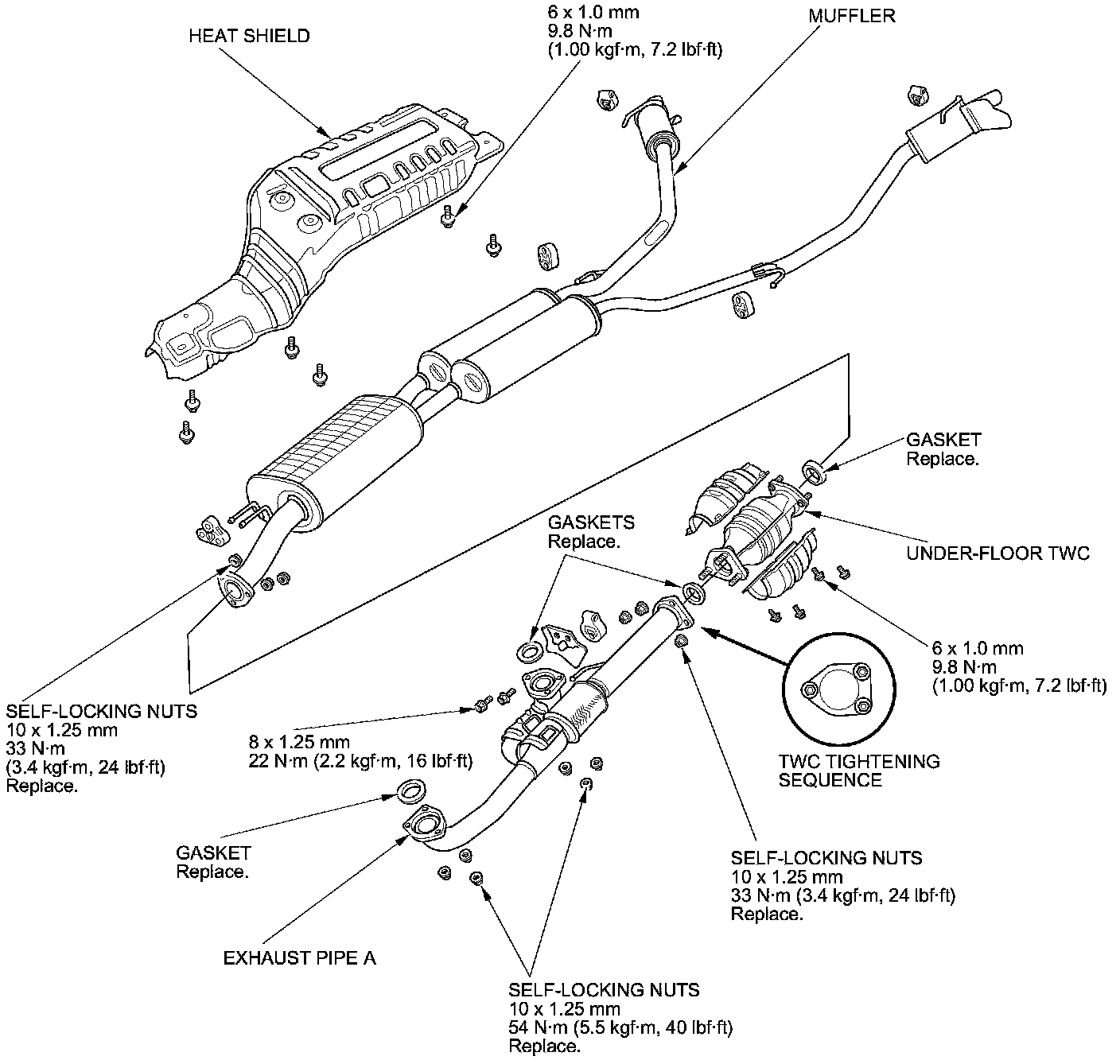 NOTE: Use new gaskets and new self-locking nuts when reassembling.