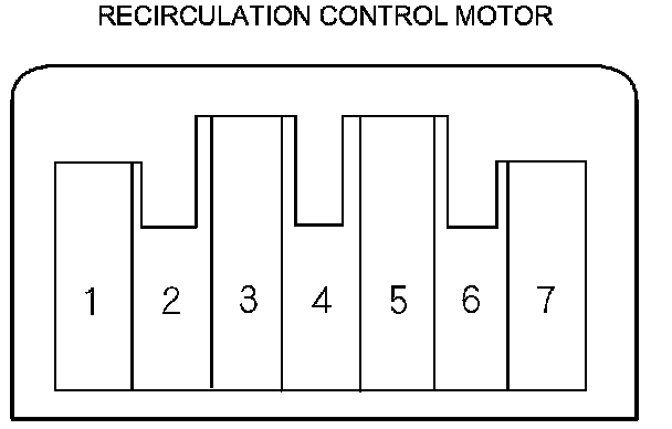 4. Use a digital multimeter with an output of 1 mA or less at the 20 kOhms range. Operate the recirculation control motor running as in step 2, and check for continuity between terminals No. 3, No. 4, and No. 5 and terminal No. 7 individually. There should be continuity for a moment at each terminal as the motor through its travel.
