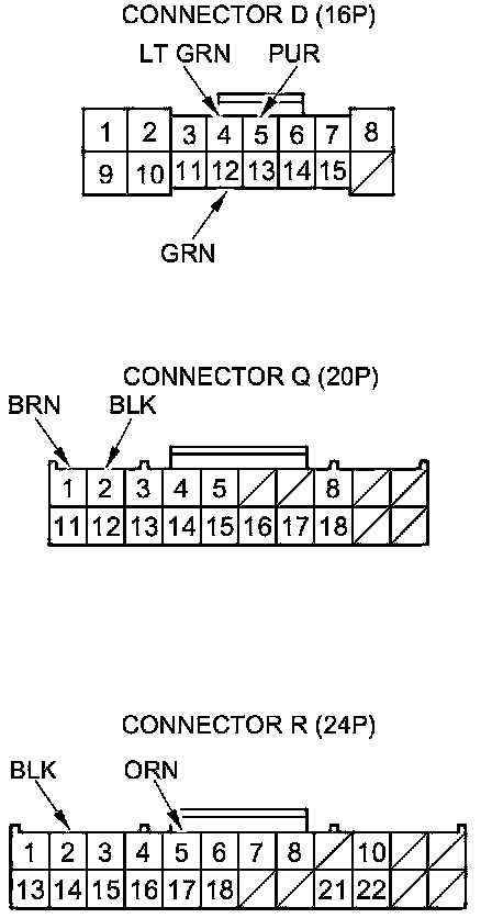 3. Disconnect driver's under-dash fuse/relay box connectors D, Q, and R.