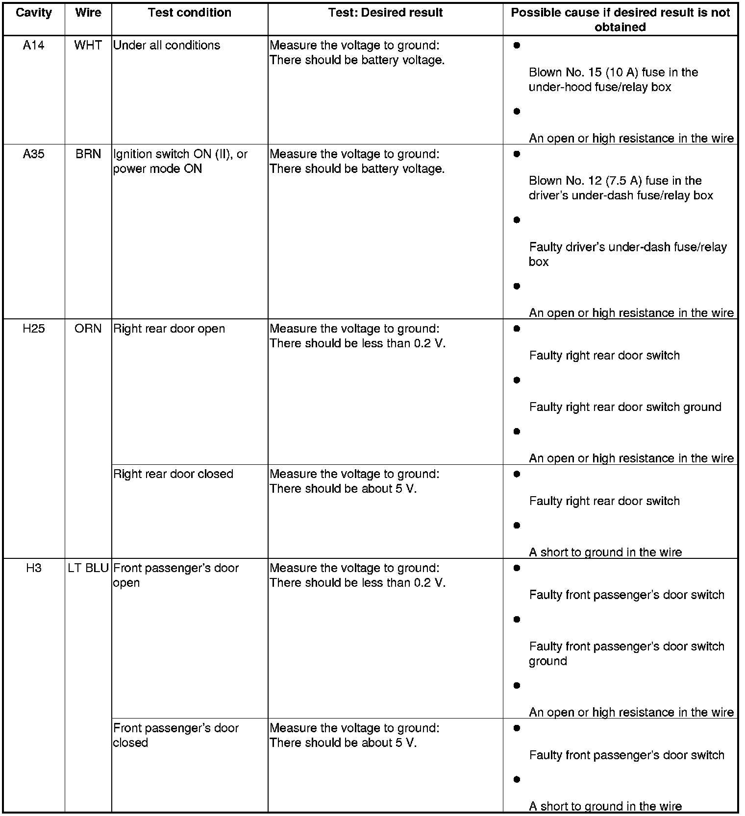 11. Reconnect the connectors to the passenger's under-dash fuse/relay box, and do the following input tests.