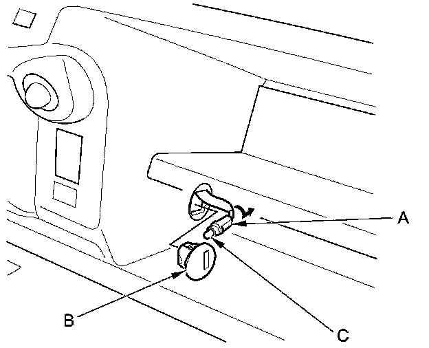 3. Twist the socket (A) to remove it from the glove box light (B).