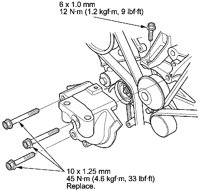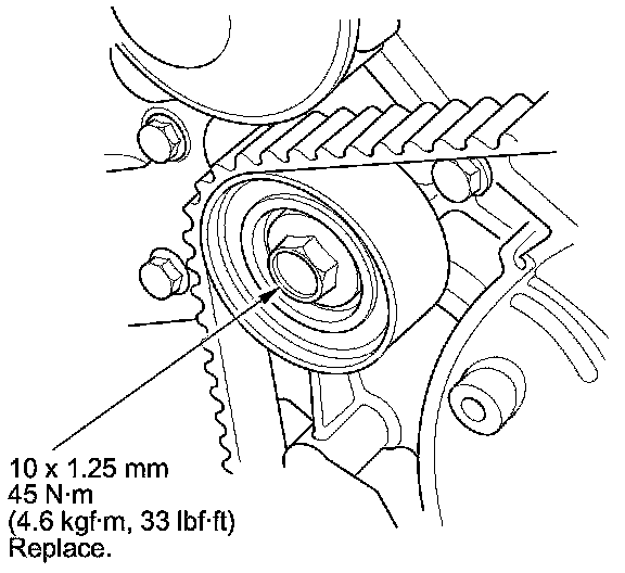 13. Install a new idler pulley bolt and tighten it to the specified torque.