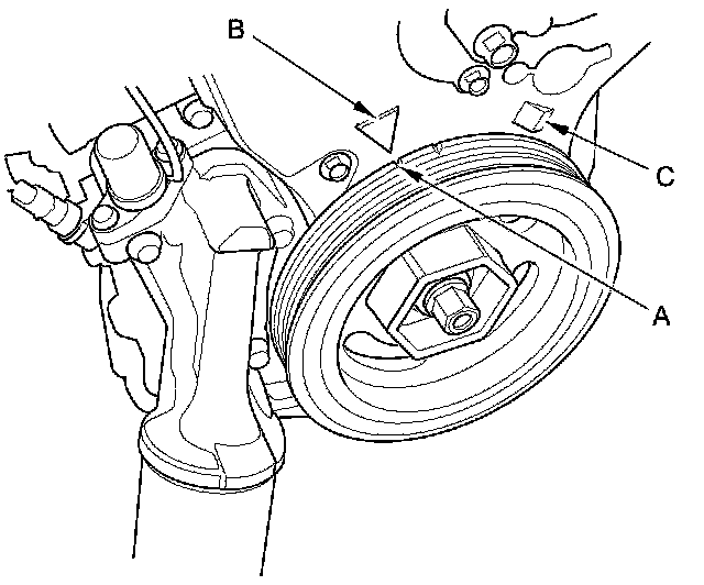 3. Front camshaft pulley (C)