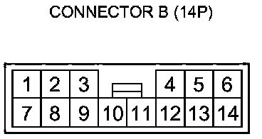 There should be battery voltage at terminal B5 when battery power is connected to terminals C4 and B12, and body ground is connected to terminals B4 and B14. There should be no voltage at terminal B5 when terminal B14 is disconnected.