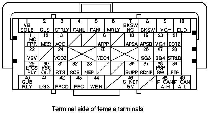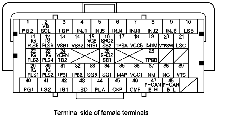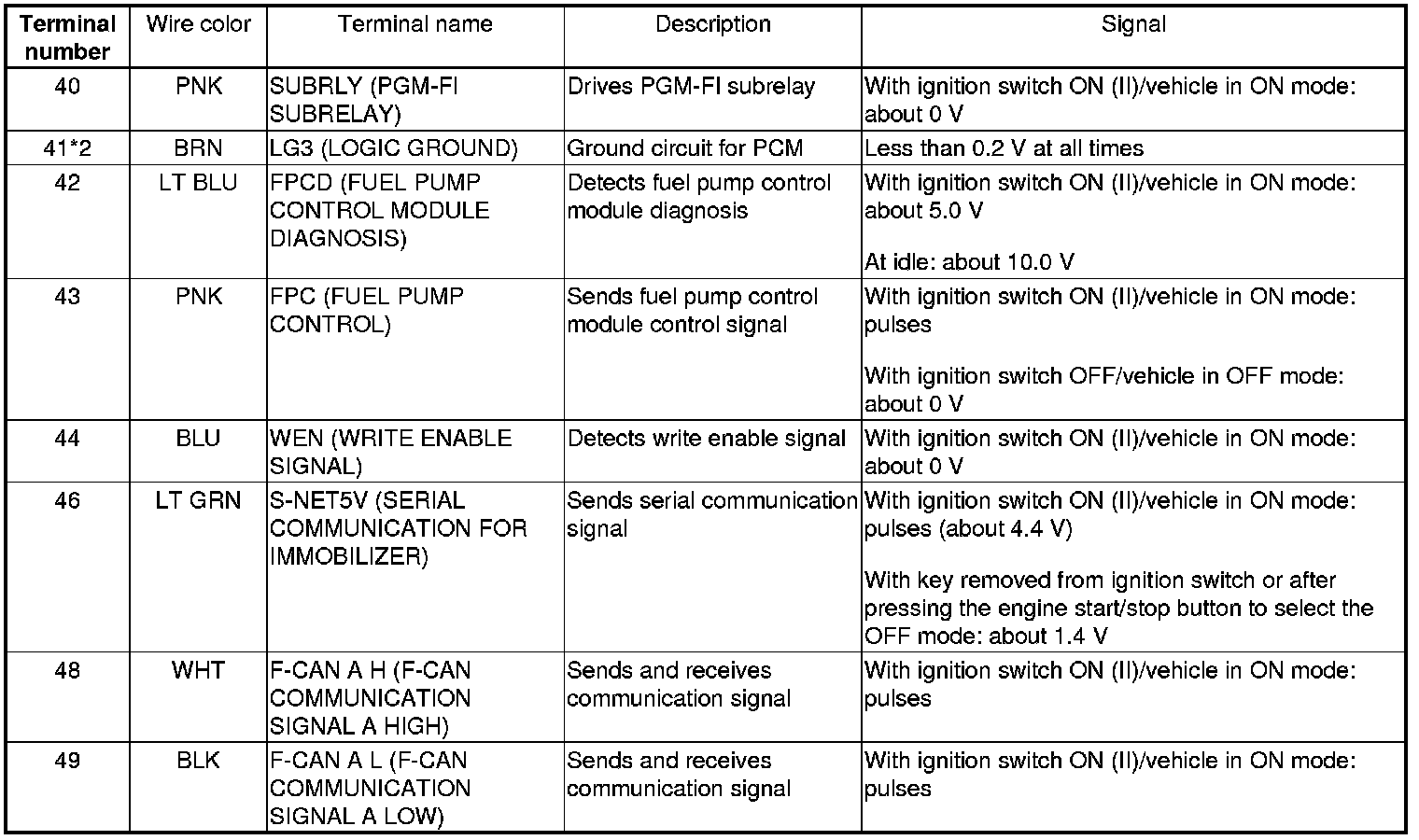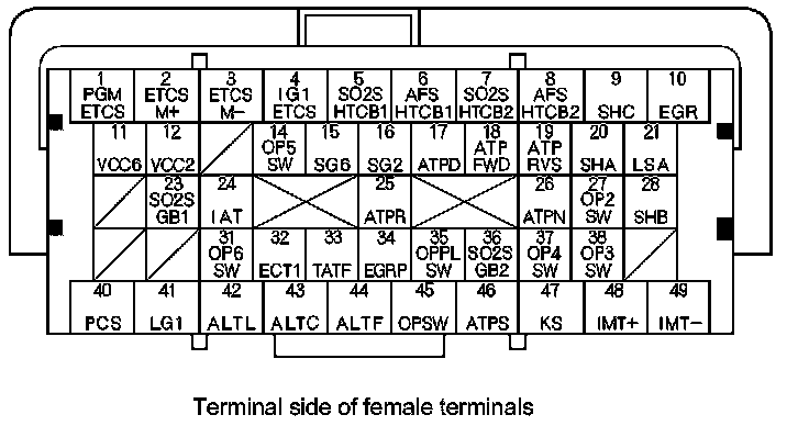 PCM Inputs and Outputs at PCM Connector A (square) (49P)