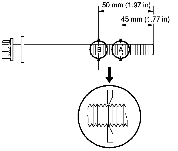 Install a new bolt if either diameter is less than 11.3 mm (0.445 in).