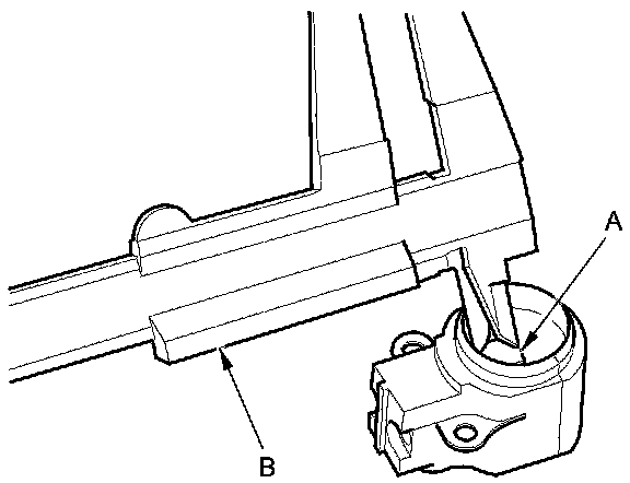 19. Push the brushes (A) in, then insert a pin or drill bit (B) (about 1.6 mm (1/16 in) diameter) to hold them there.