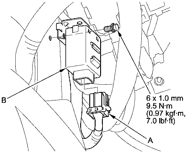 4. Disconnect the connector (A) from the ECPS control unit (B), then remove the control unit.