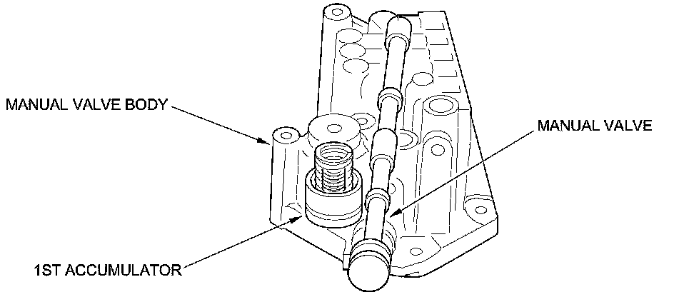 The manual valve body is located on the main valve body; it contains the 1st accumulator and the manual valve.