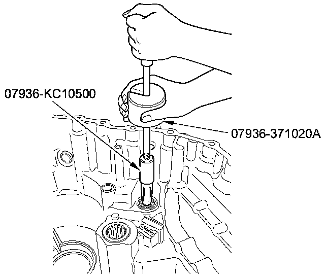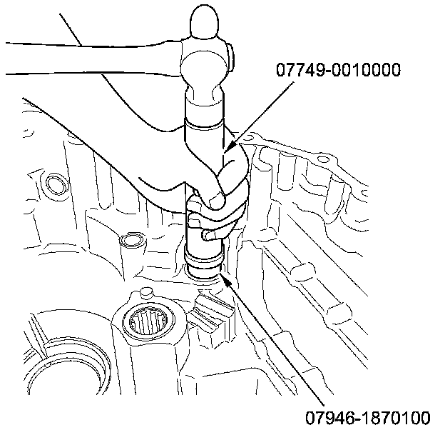 2. Install a new bearing until it bottoms in the transmission housing using the 15 x 135L driver handle and the 28 x 30 mm bearing driver attachment.
