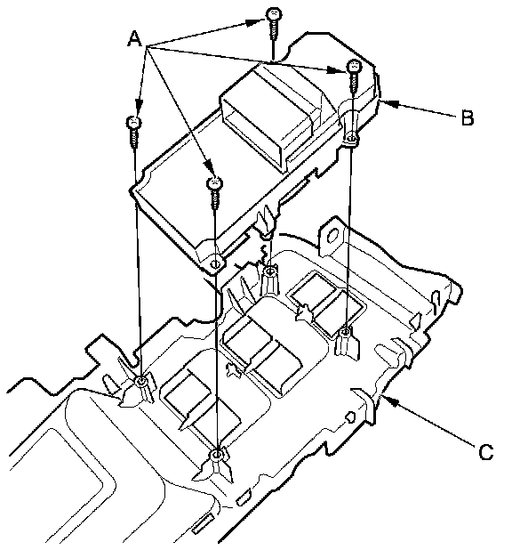 2. Remove the four screws (A), then remove the power window master switch (B) from the power window switch panel assembly (C).