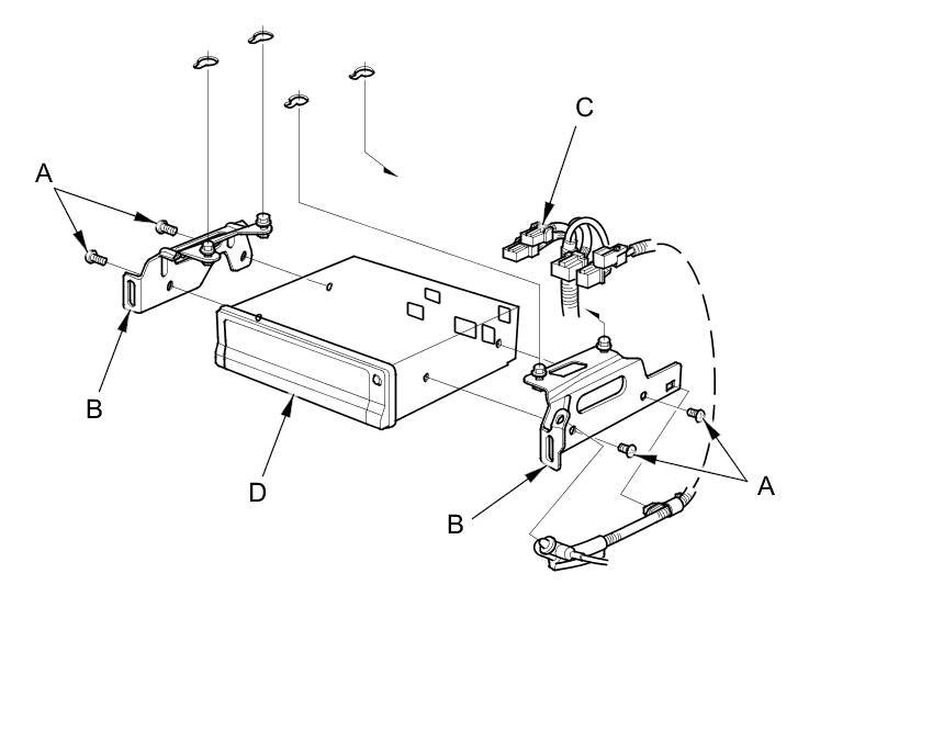 5. Loosen the mounting bolts, then remove the four screws (A) from the navigation unit brackets (B).