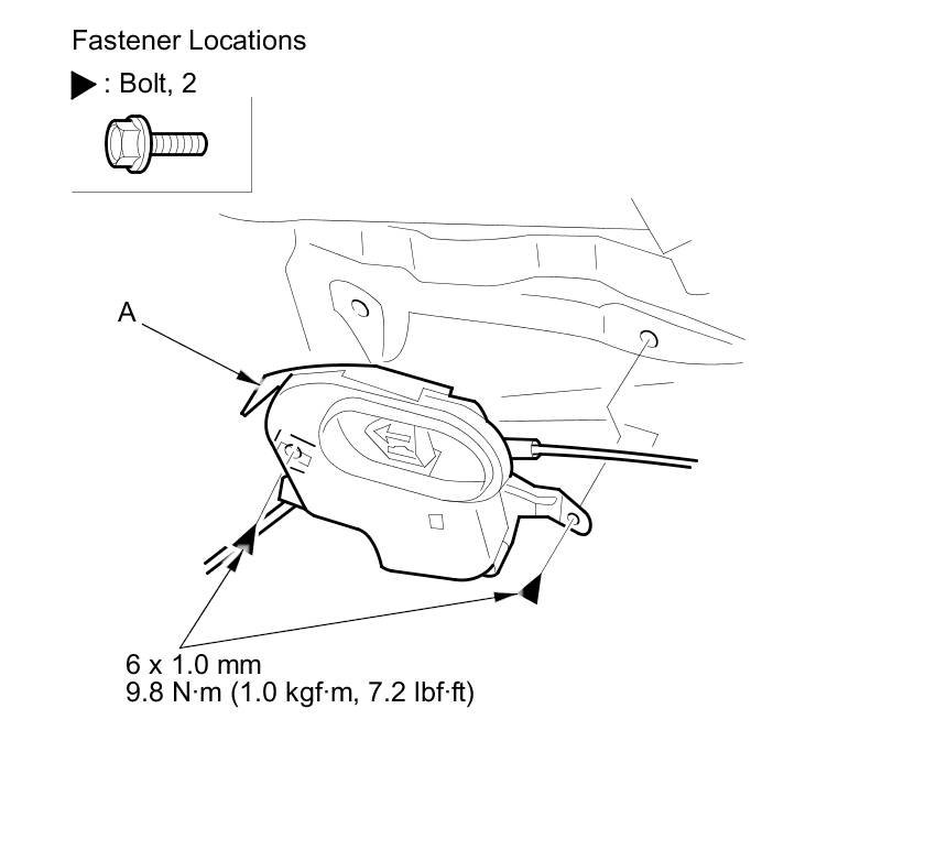 2. Remove the bolts, then remove the trunk inside lever (A) from the body.