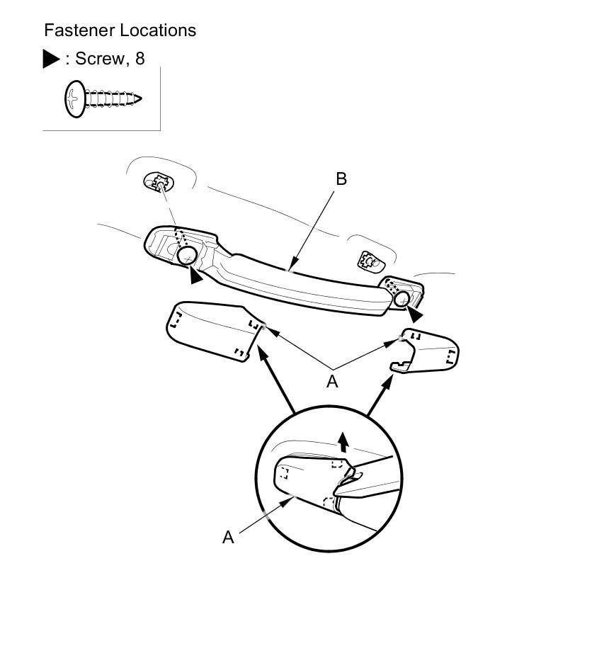 9. If necessary, remove the clips (A) from the grab handle brackets (B).