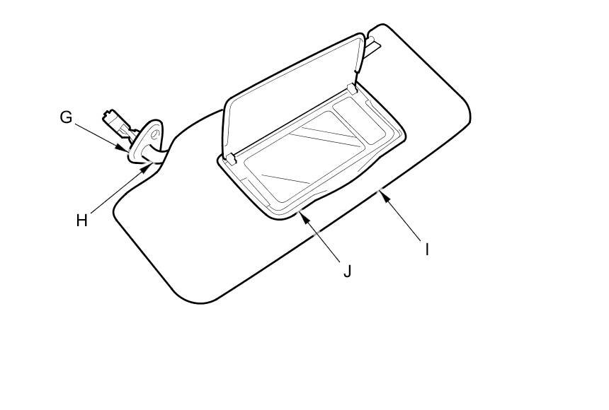 - Any bends or cracks in the sunvisor stay shaft (H)