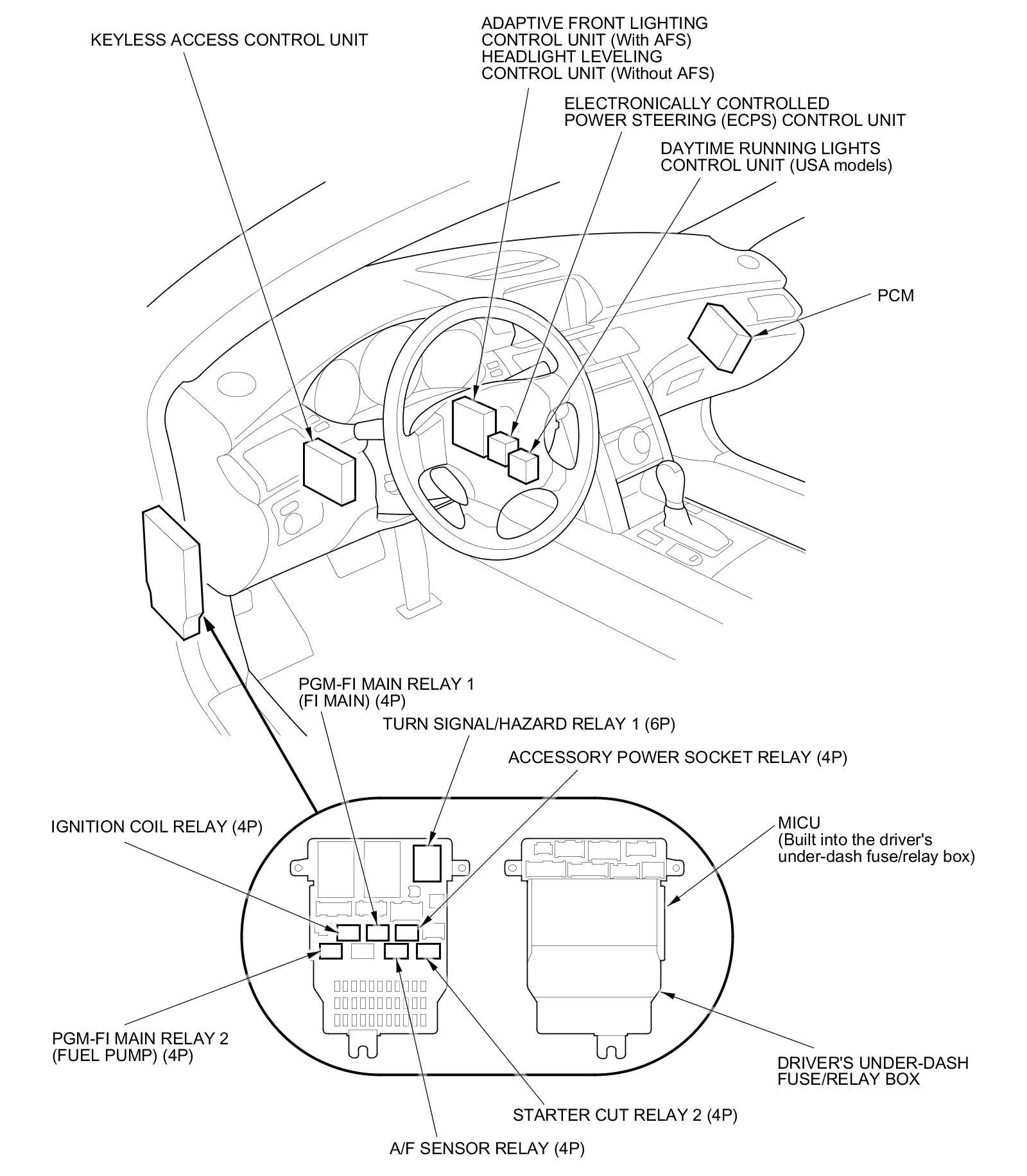 Relay and Control Unit Locations - Dashboard