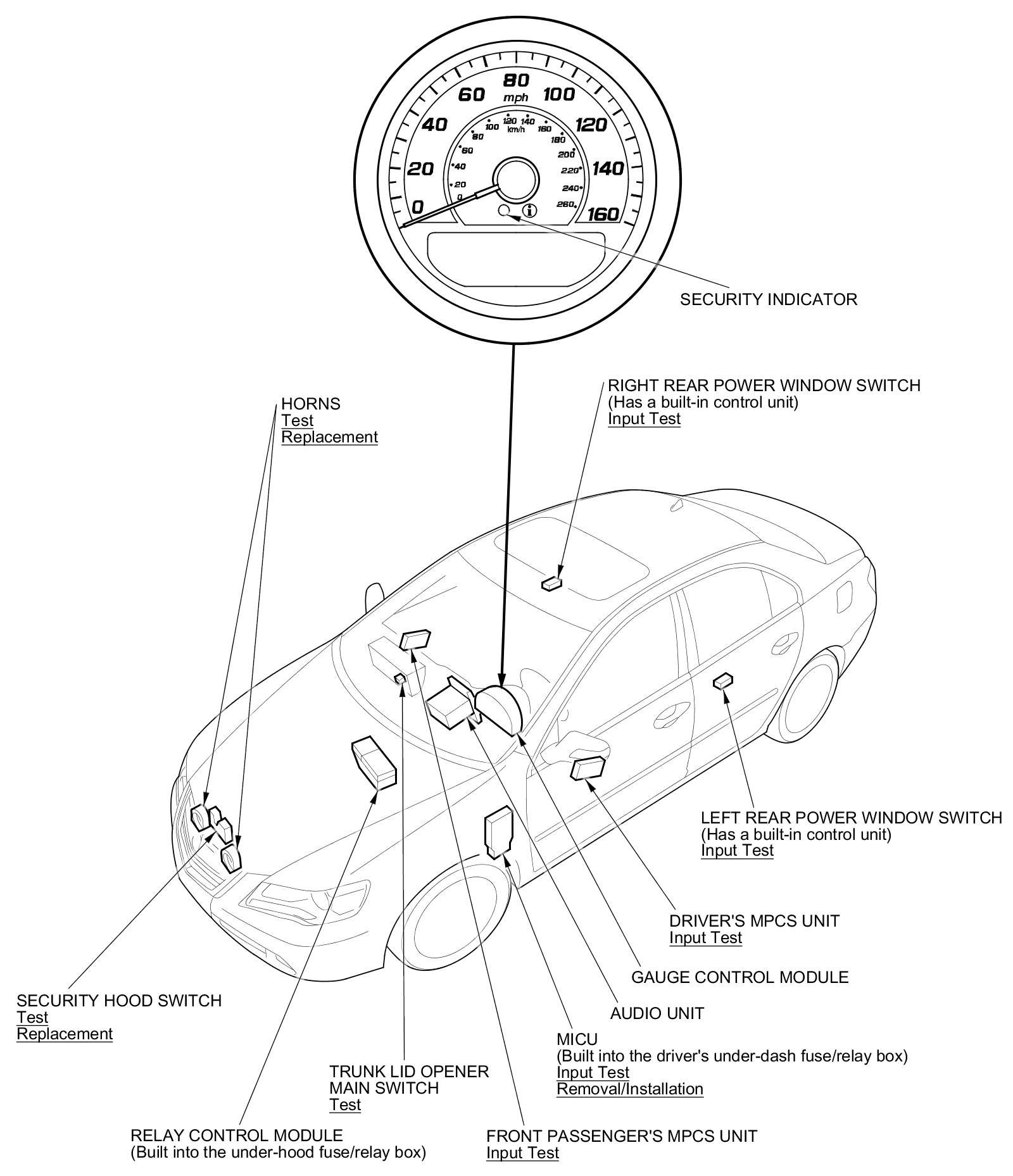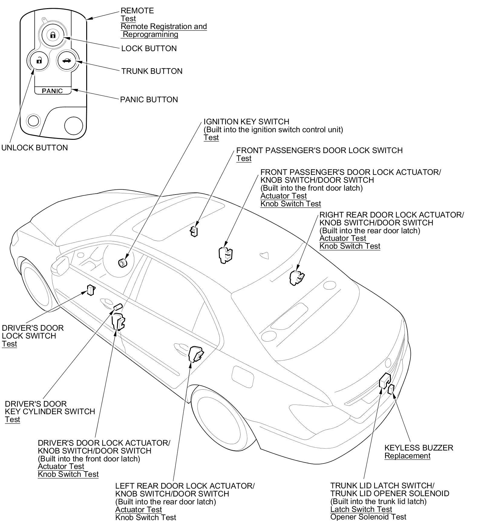 Keyless/Power Door Locks/Security System Component Location Index