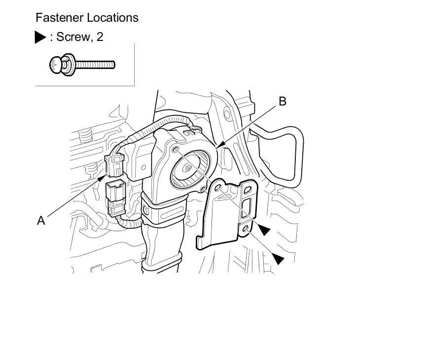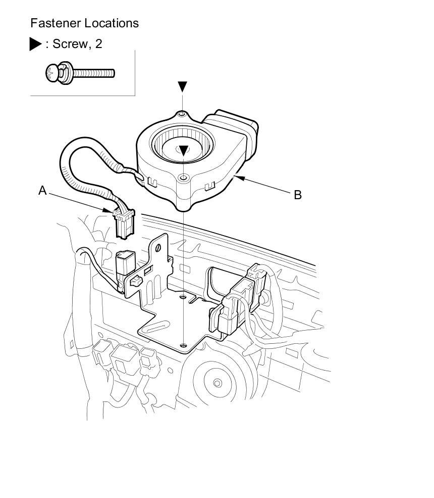 3. Disconnect the blower motor connector (A), and remove the screws, then remove the blower motor (B) from the seat cushion front duct.