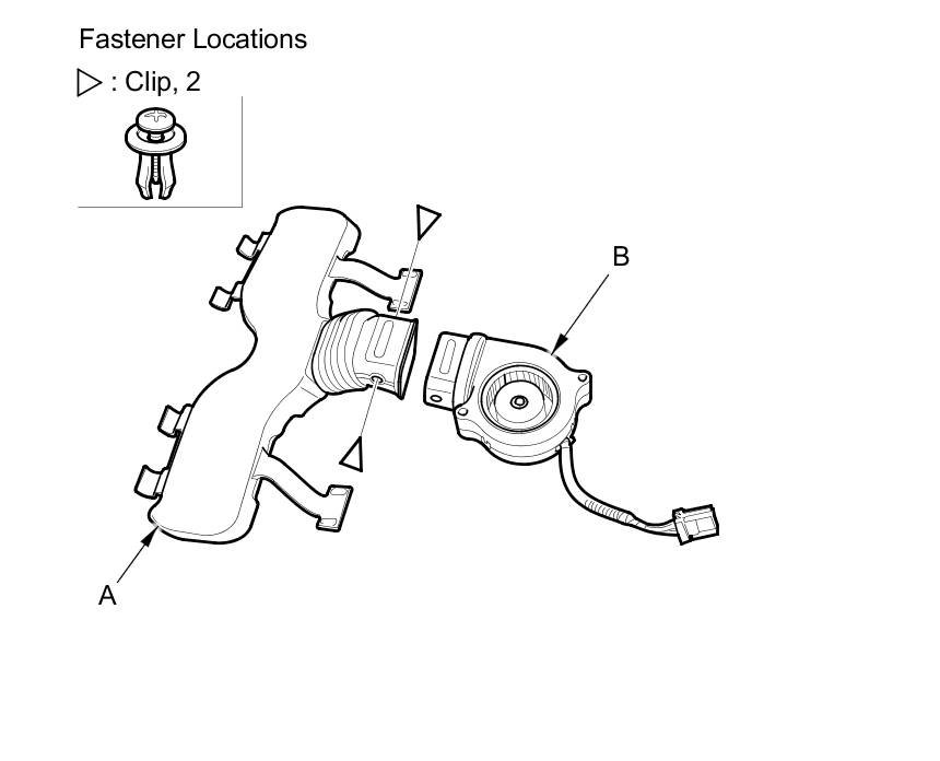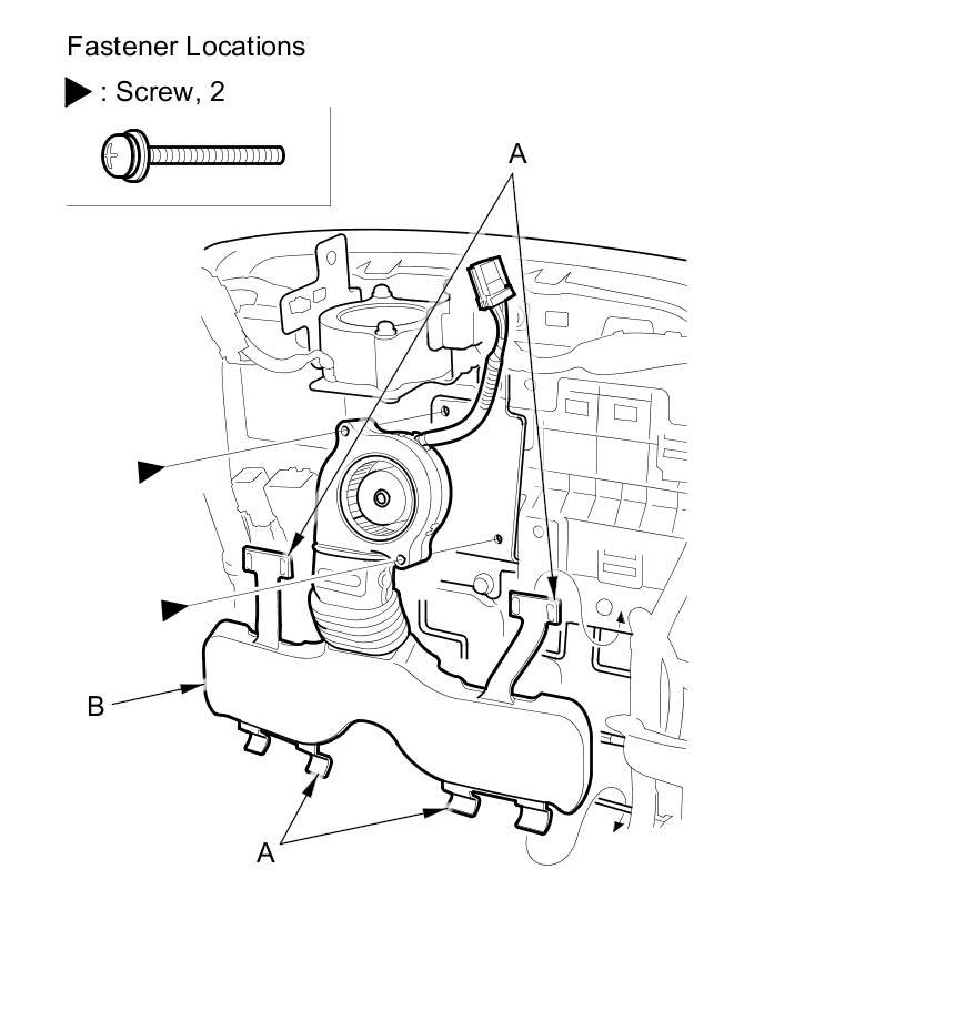 6. Remove the clips, then separate the duct (A) and the blower motor (B).