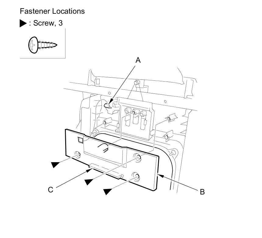 3. Remove the screws, and release the hook (A), then pull out the key cover (B) to release the hook (C).