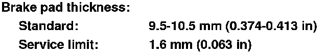 4. If any part of the brake pad thickness is less than the service limit, replace the rear brake pads as a set.