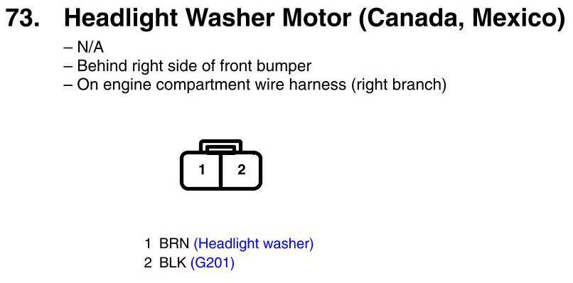 View 73 - Headlight Washer Motor Connector View (Canada, Mexico)