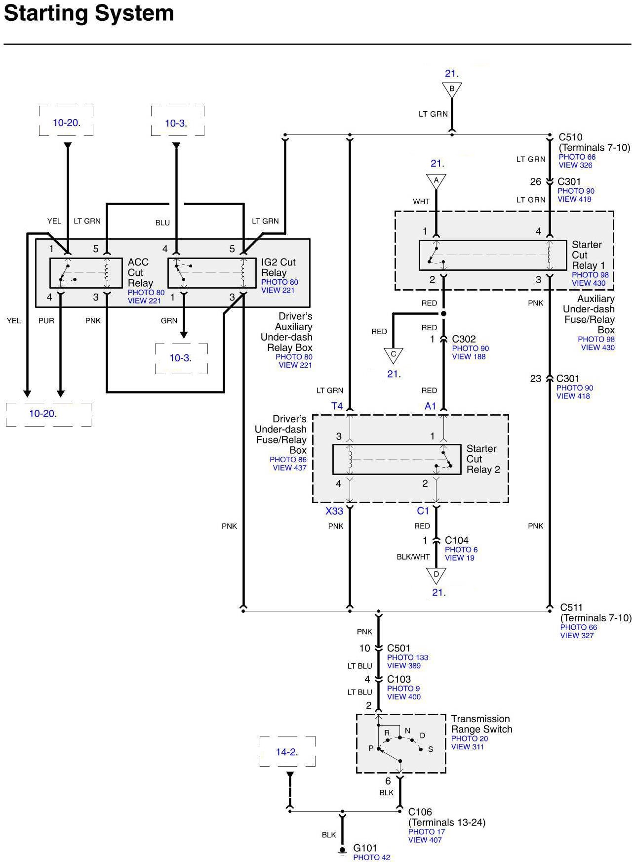 Connector Views: Connector terminal views (references to VIEWS) referred to within these diagrams can be found at Connector Views by View Number. Connector Views By View Number