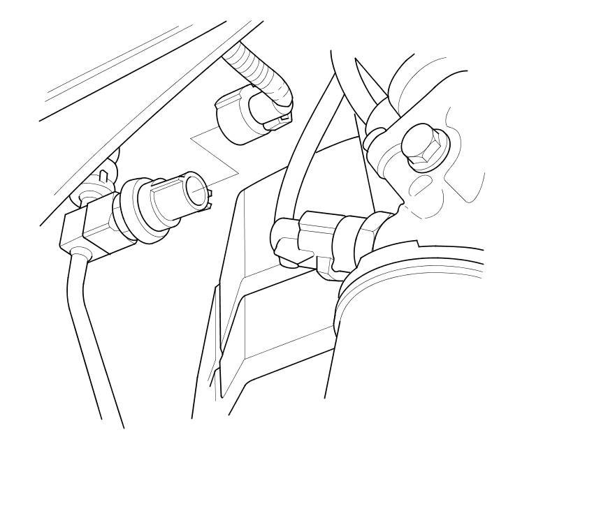 64. Check that the engine/transmission is completely free of the vacuum hoses, the fuel hoses, the coolant hoses, and the electrical wiring.
