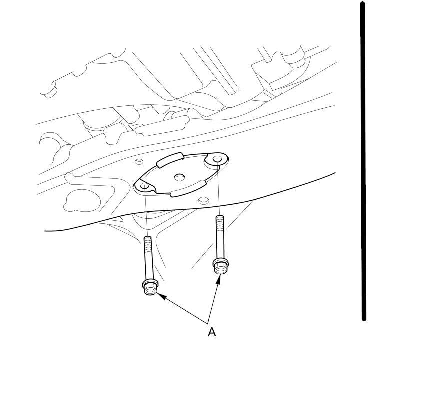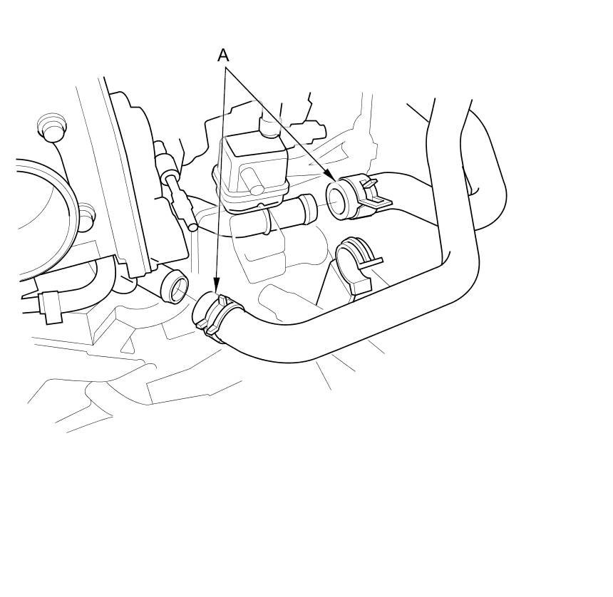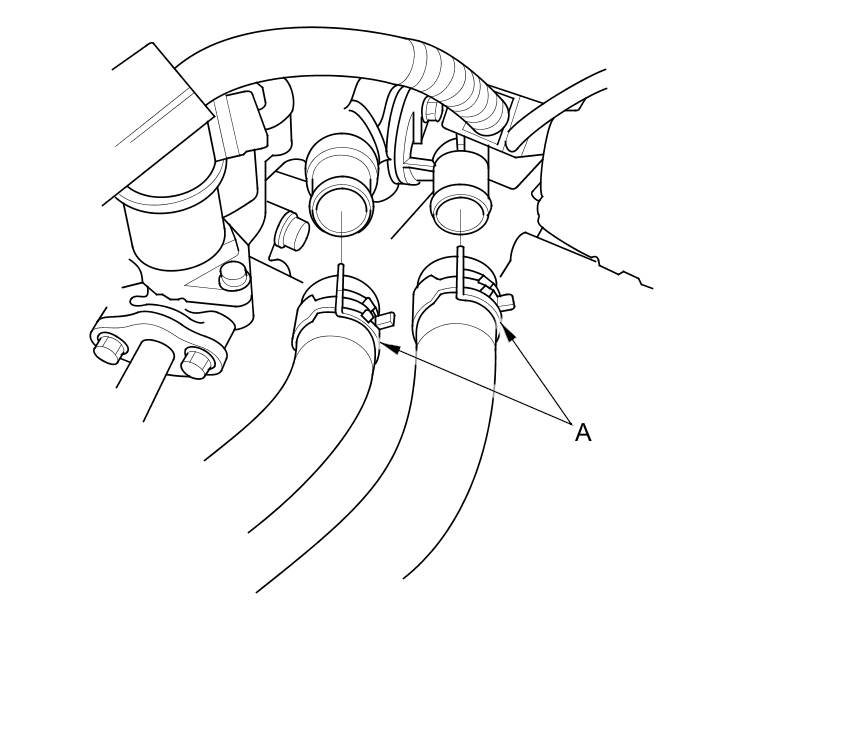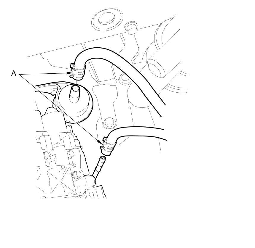 49. Disconnect the ATF cooler hoses (A) from the transmission, then plug the ATF cooler hoses and the lines.