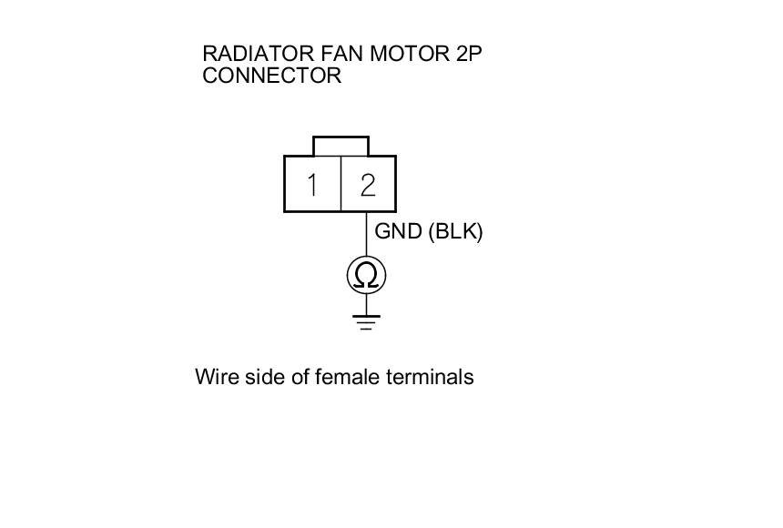 2. Check for continuity between radiator fan motor 2P connector terminal No. 2 and body ground.