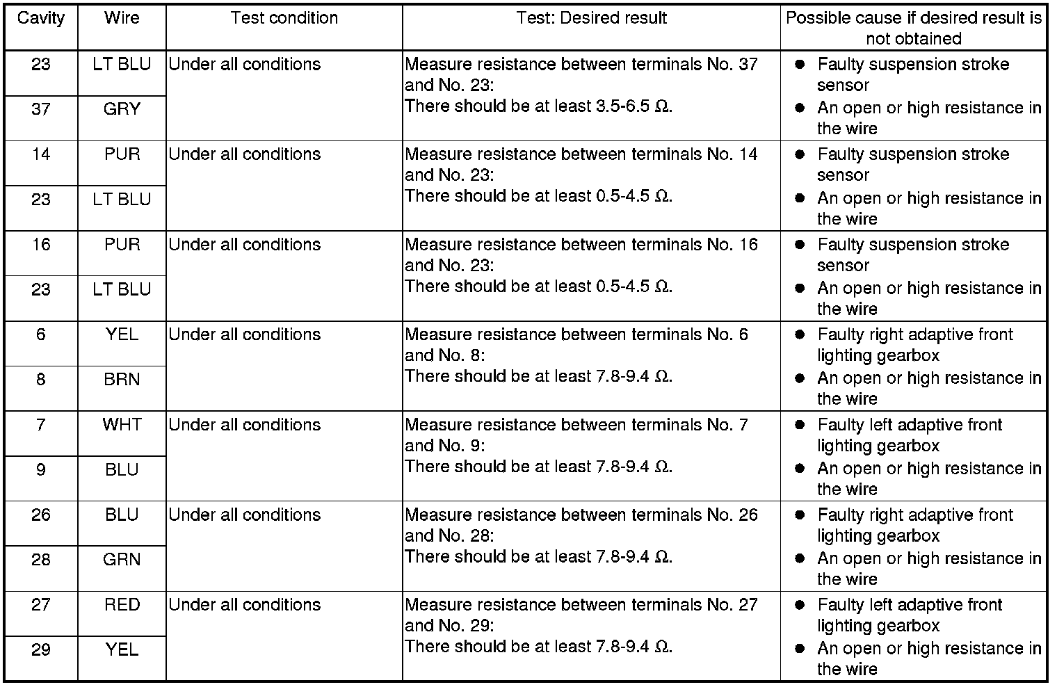 - If all the input tests prove OK, the control unit must be faulty; replace it.