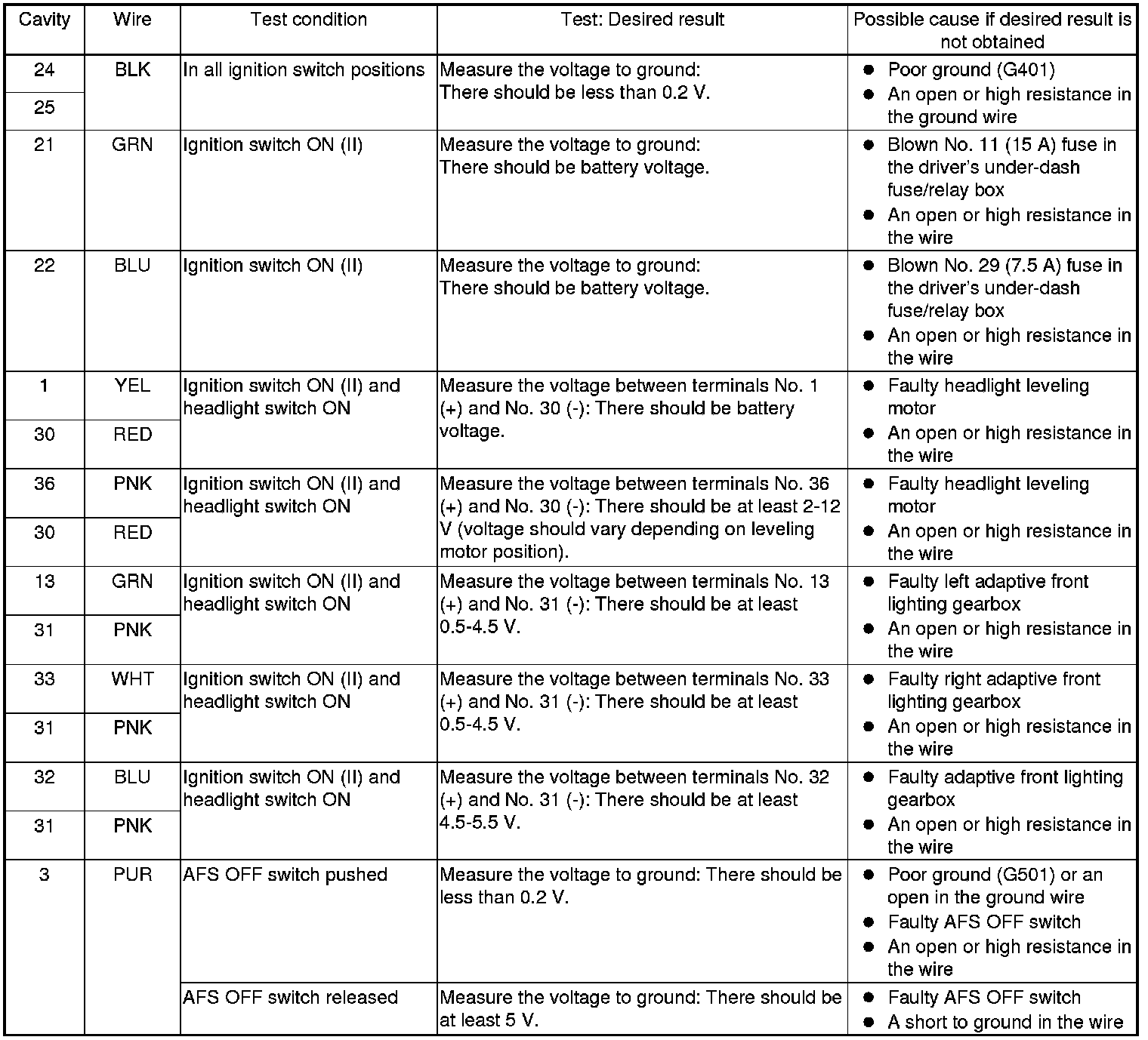 Adaptive Front Lighting Control Unit Input Test/Replacement