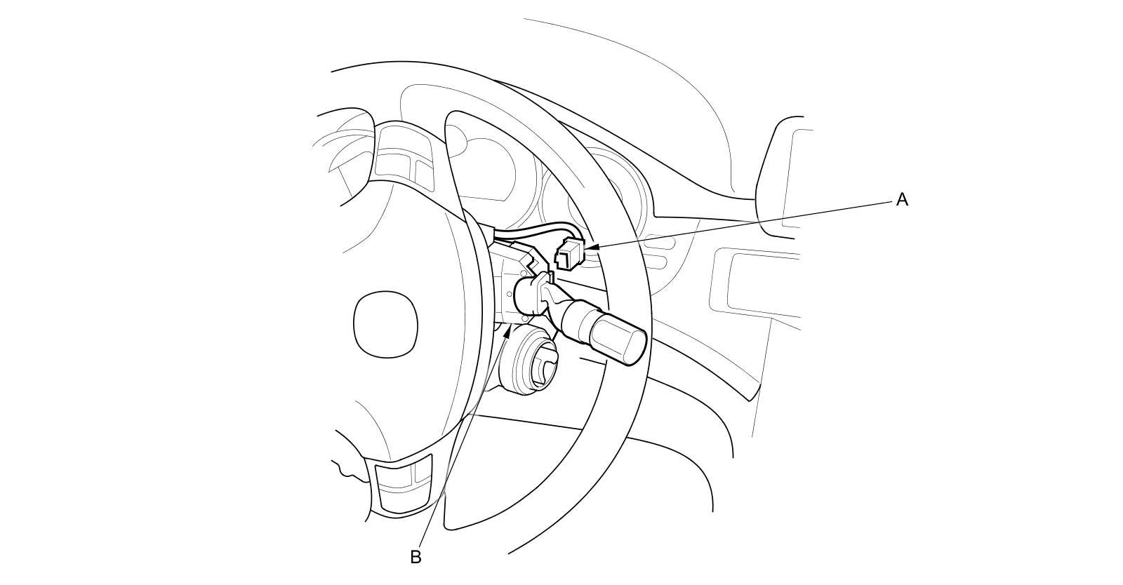 3. Disconnect the combination light switch 12P connector (A) from the wiper/washer switch (B).